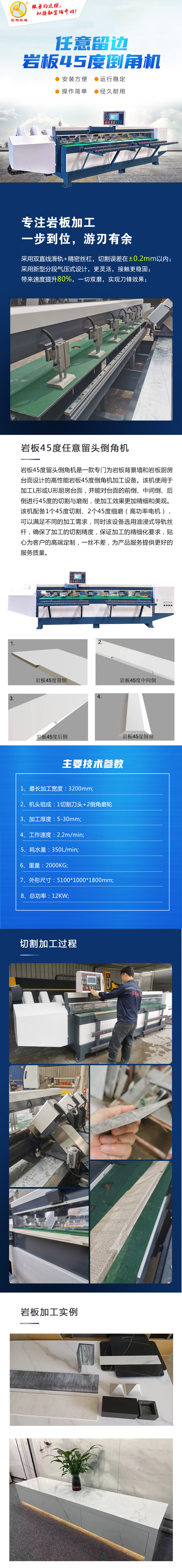 3200型三刀頭巖板45度任意留頭倒角機(jī),實(shí)現(xiàn)巖板大板任意留邊無縫倒角,可實(shí)現(xiàn)板材45度前倒和中間倒及后倒,留頭留尾的智能倒角機(jī)